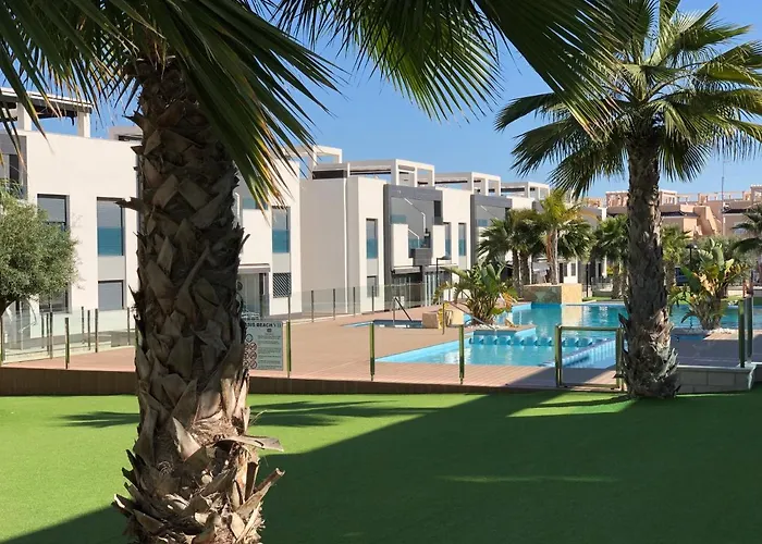 Villan Oasis Beach 7 - Apartment Lundgren Torrevieja med 2 sovrum, som ligger ungefär 6 minuter till fots från Punta Marina, erbjuder gästerna en terrass samt en privat pool. Den här villan med 2 badrum, som har bubbelpool och hydromassagebadkar, ligger inom 4 km från Jardín de las Naciones.